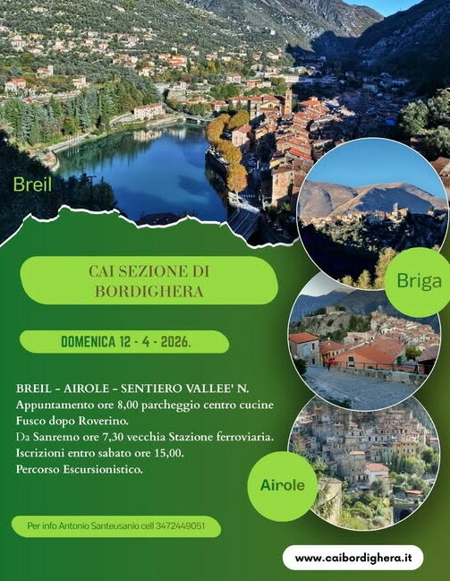 La sezione di Bordighera del Club Alpino Italiano organizza per domenica una gita sociale in Valle Roia, nel tratto compreso tra Breil sur Roja e Airole, lungo lo storico Sentiero Valléen. Si tratta di un antico percorso escursionistico di grande fascino, che collega Vievola a Ventimiglia, offrendo agli appassionati l’opportunità di immergersi in un contesto naturale e culturale di particolare interesse.