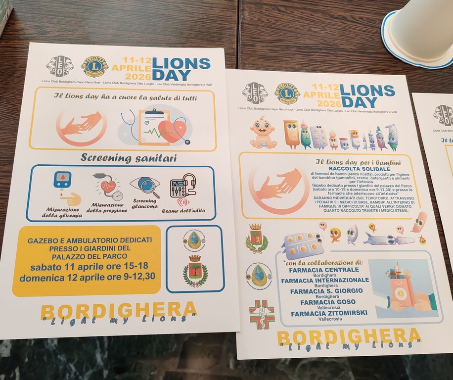 Nel corso di due giornate, sabato dalle 10 alle 18 mentre domenica dalle 8.30 alle 13.30, il centro città accoglierà oltre 25 stand dedicati ai progetti del Lions Clubs International. Sono previsti screening sanitari gratuiti (glicemia, pressione, vista e udito), attività informative e iniziative di sensibilizzazione su temi sociali, ambientali e giovanili, oltre a visite guidate e appuntamenti diffusi tra Palazzo del Parco, giardini, lungomare e Park Hotel. "Per la prima volta nella storia Bordighera organizza questo importante evento. Il Lions Day rappresenta un momento fondamentale per la crescita di tutti i Lions e noi abbiamo pensato di concepirlo come una grande festa, la festa del Lions International e la festa della nostra città, nel cuore di Bordighera, dove verranno mostrate alla cittadinanza tutte le nostre attività" - afferma Axl Roberto Ferrandini, presidente del Lions Club Bordighera Otto Luoghi - "La nostra idea di Lions ci vede in prima linea nell'affrontare i bisogni della nostra comunità e del nostro mondo ma riteniamo che questo debba essere fatto con la serietà che ci contraddistingue da sempre ma anche con tanta allegria e un po' di leggerezza, quello che ho imparato nei miei anni di Leo, perché ciò che ci terrà sempre uniti è il sorriso, un sorriso che vogliamo regalare a tutti i cittadini che avranno la voglia di conoscerci nell'arco delle due giornate. Alle 15 aprirà il Villaggio Lions dove, tra i vari stand, che rappresentano da sempre il fiore all'occhiello del nostro operare, saranno presenti spazi informativi dedicati ai principali service Lions e ai progetti di solidarietà che portiamo avanti con passione e spirito di servizio. Saranno presenti, per esempio, la Banca degli occhi, la LCIF, Viva Sofia, Città Murate, progetto Kairos, campo giovani disabili, Lions Pin Trading club MD108 Italy, raccolta occhiali usati, raccolta di farmaci e alimentare. Inoltre, saranno presenti associazioni legate alle tradizioni e alla tutela del nostro territorio. I services si svolgeranno al teatro Golzi e nel suo parco dalle 15 alle 18 di sabato 11 aprile e dalle 9 alle 13 di domenica 12 aprile".