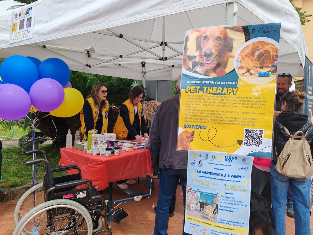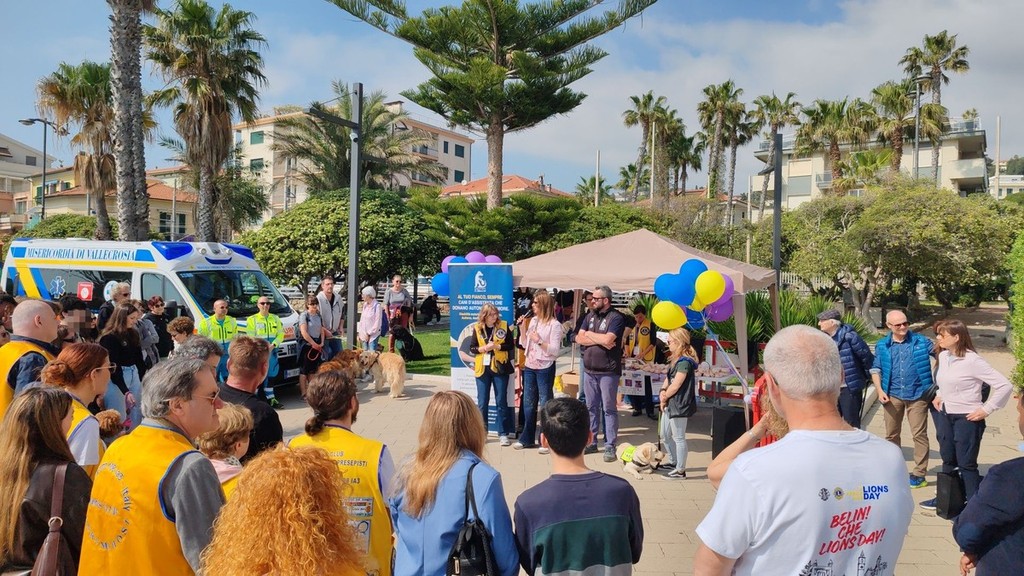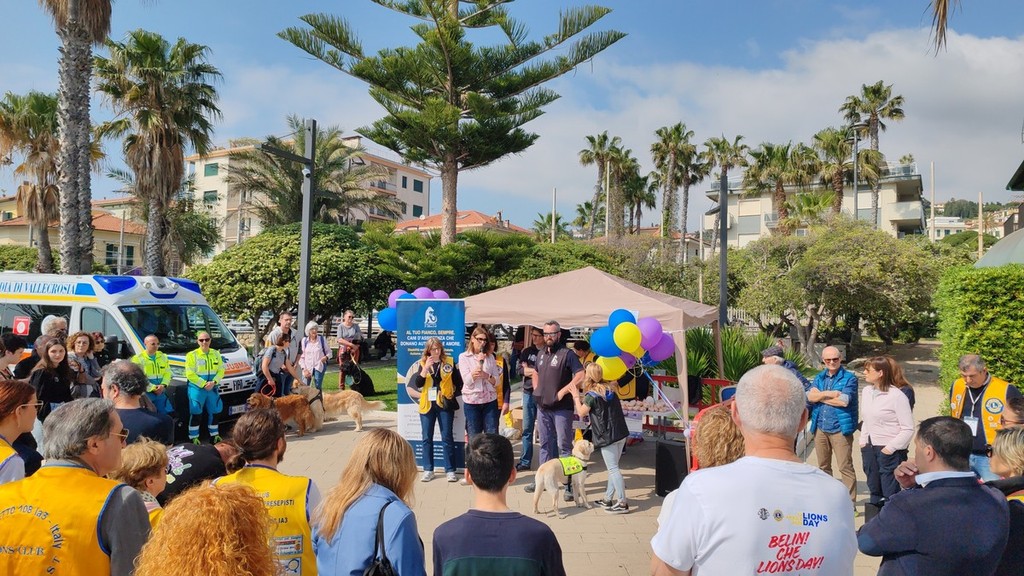 Gazebo, screening e passeggiata a 6 zampe. Ha preso il via oggi il Lions Day a Bordighera. I diversi Lions Club presenti hanno, infatti, avuto modo, da questa mattina, di incontrare la comunità per presentare le proprie attività e iniziative di servizio, di prevenzione e sensibilizzazione offrendo pure la possibilità a cittadini e turisti di fare screening gratuiti della vista, dell'udito e della glicemia. Nel pomeriggio, invece, è stato ufficialmente aperto, con un taglio del nastro, il Villaggio Lions a Palazzo del Parco e poi si è svolta la passeggiata a 6 zampe, da Palazzo del Parco fino all'hotel Parigi, sul lungomare di Bordighera, dove si è tenuta una dimostrazione speciale intitolata 'Il Collare d’Oro', dedicata a mostrare concretamente come i cani d'assistenza aiutano le persone con epilessia.