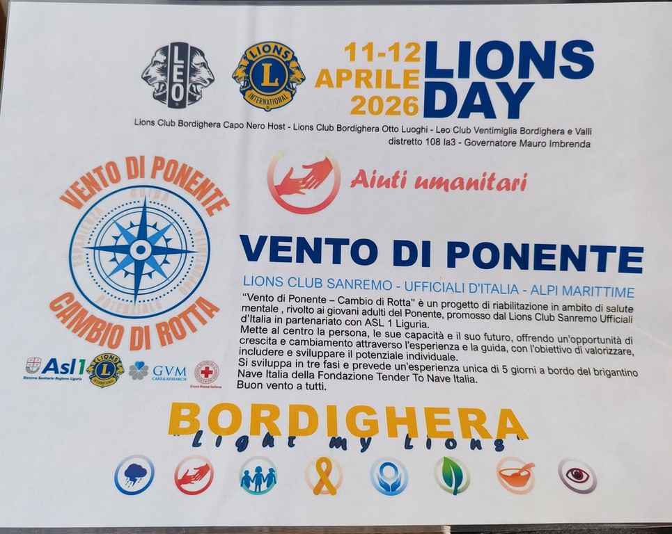 La manifestazione, organizzata dai Lions Club Bordighera Otto Luoghi, Bordighera Capo Nero Host e il Leo Club Ventimiglia Bordighera e Valli con il patrocinio del Comune, continuerà anche domani, il 12 aprile. Alle 8.30 sono previste l'accoglienza dei Lions e accompagnatori, la consegna dei guidoni, la consegna degli occhiali usati presso lo stand al Palazzo del Parco, una colazione offerta dal comitato organizzatore e preparata e servita dalla Spes di Ventimiglia e le attività congressuali del Lions Day all'interno del Palazzo del Parco. Per l'occasione parteciperanno circa 300 delegati provenienti da diverse province del territorio. L’evento coinvolge, infatti, l’intero Distretto Lions, che riunisce 72 club e circa 3000 soci. Alle 9 sono, inoltre, previste la partenza dalla spianata dei pennoni di InfiniteVentimiglia mentre alle 10, da Palazzo del Parco, visite guidate alla scoperta della città murata, delle chiese e dei luoghi storici di Bordighera.