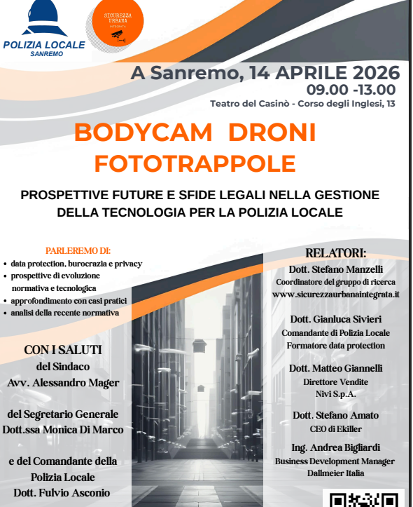 L’iniziativa, promossa dal Comune di Sanremo, rappresenta un momento di approfondimento tecnico rivolto ad amministratori pubblici, comandanti e operatori di polizia locale, tecnici comunali, responsabili della protezione dei dati e professionisti del settore, chiamati oggi a confrontarsi con un quadro regolatorio sempre più articolato in cui protezione dei dati personali, sicurezza urbana, tutela ambientale e innovazione tecnologica si intrecciano stabilmente.