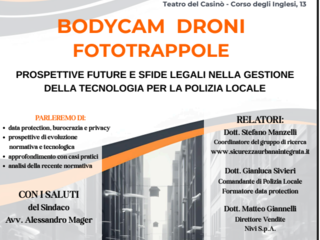 Gli argomenti saranno approfonditi anche alla luce delle ultime indicazioni in materia di bodycam (Pescara) e droni (Lecce), secondo il programma illustrato nella locandina allegata.