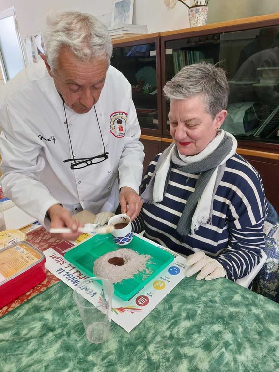 Gran finale con una prova pratica dedicata al dolce simbolo della città: la Castagnola di Ventimiglia. A condurre il laboratorio è stato Gianni Gepponi, considerato un vero maestro della tradizione, che ha guidato gli “alunni” nella preparazione.