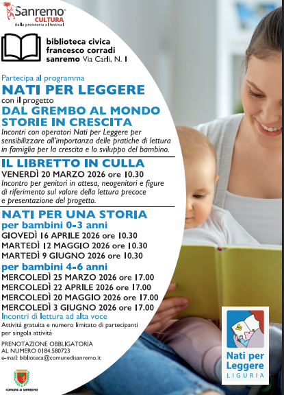 Tutte le attività saranno gratuite fino ad esaurimento posti. Per prenotarsi è possibile inviare una mail all’indirizzo biblioteca@comunedisanremo.it o telefonare al numero 0184/580723.