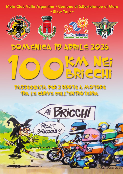 Mancano pochi giorni alla “100 km nei Bricchi”, la gita motociclistica nell’entroterra organizzata dal Moto Club Valle Argentina con la collaborazione del Comune di San Bartolomeo al Mare, in programma domenica 19 aprile.