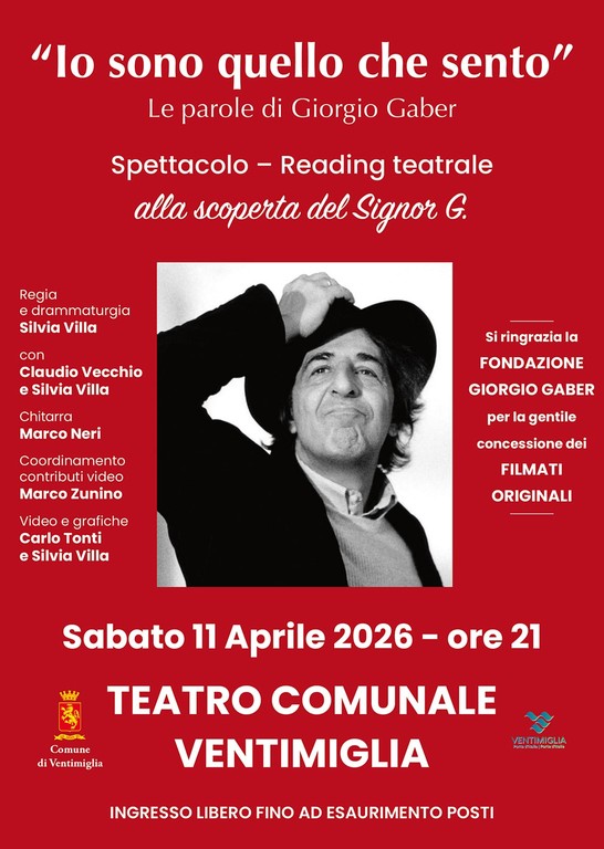 Una serata all’insegna della memoria, dell’ironia e dell’emozione. Grande successo e affluenza di pubblico, sabato sera al teatro comunale di Ventimiglia, per il reading teatrale alla scoperta di Giorgio Gaber: “Io sono quello che sento”.