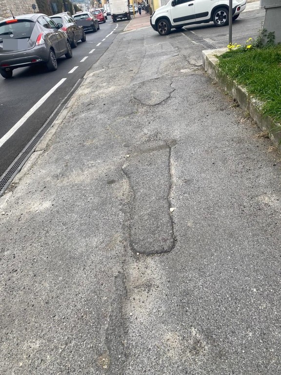 "Marciapiede, vicino alla rotonda all'incrocio tra via Tacito e corso Genova, in condizioni di grave degrado. E' necessario intervenire con urgenza". Lo segnala il consigliere comunale di minoranza a Ventimiglia Gaetano Scullino.