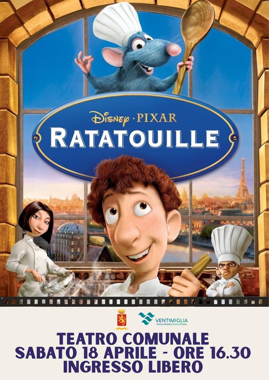 Torna il cinema per i bambini al teatro comunale di Ventimiglia. Dopo il grande successo di Coco e de Il gobbo di Notre Dame, la rassegna cinematografica dedicata ai più piccoli prosegue, sabato 18 aprile alle 16.30, con Ratatouille.