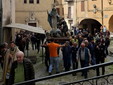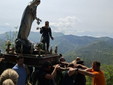 Particolarmente significativa la presenza dei portatori, che si sono alternati lungo il percorso nel trasporto del gruppo statuario della Madonna della Misericordia, affrontando con determinazione la fatica della salita. Accanto alla statua, il Cristo e la Croce nera — portata secondo l’antica usanza da incappucciati scalzi — hanno restituito al rito la sua dimensione più autentica e suggestiva. Il corteo si è snodato in un clima di silenzio, preghiera e partecipazione corale, fino a raggiungere la sommità del monte, dove si è svolto il momento centrale della celebrazione. Qui, tra memoria e simbolo, si è rinnovato il tradizionale gesto di benedizione delle campagne e l’antico esorcismo contro i parassiti, segno di un legame mai spezzato con la storia agricola del territorio.