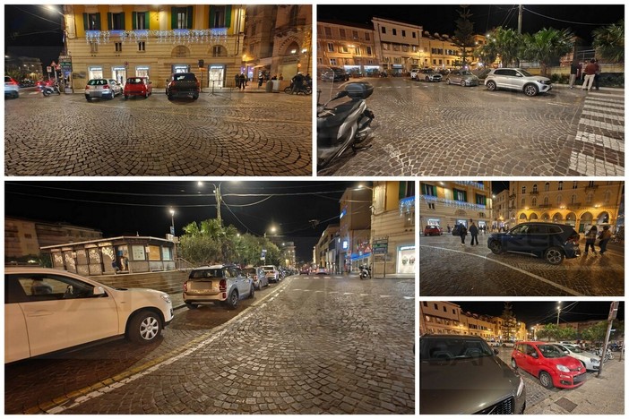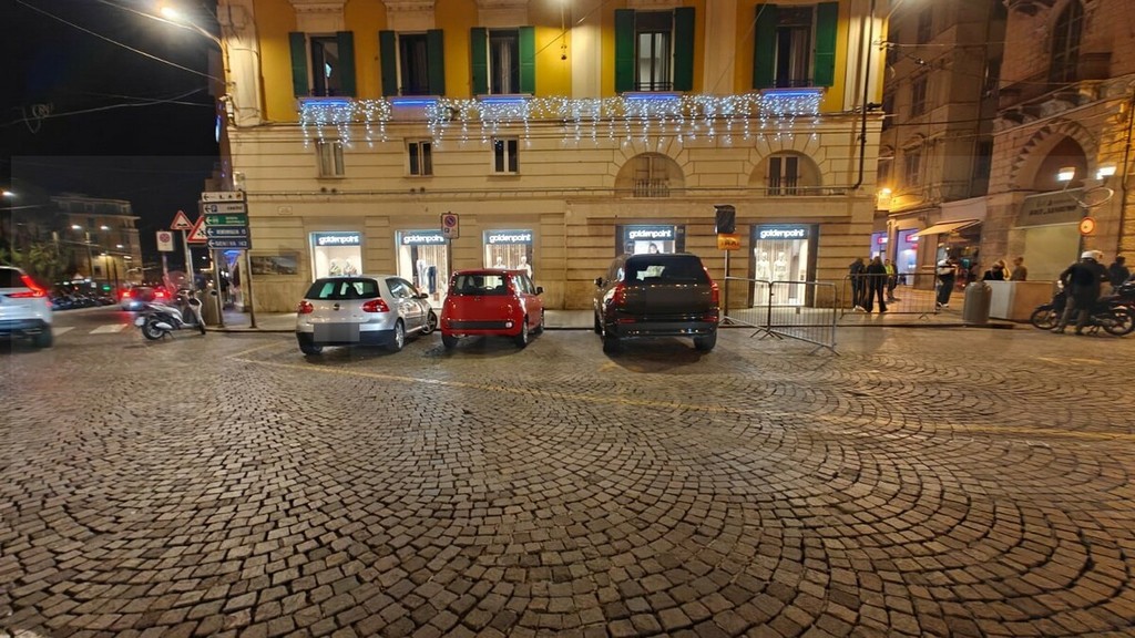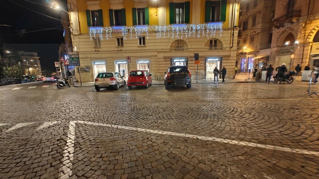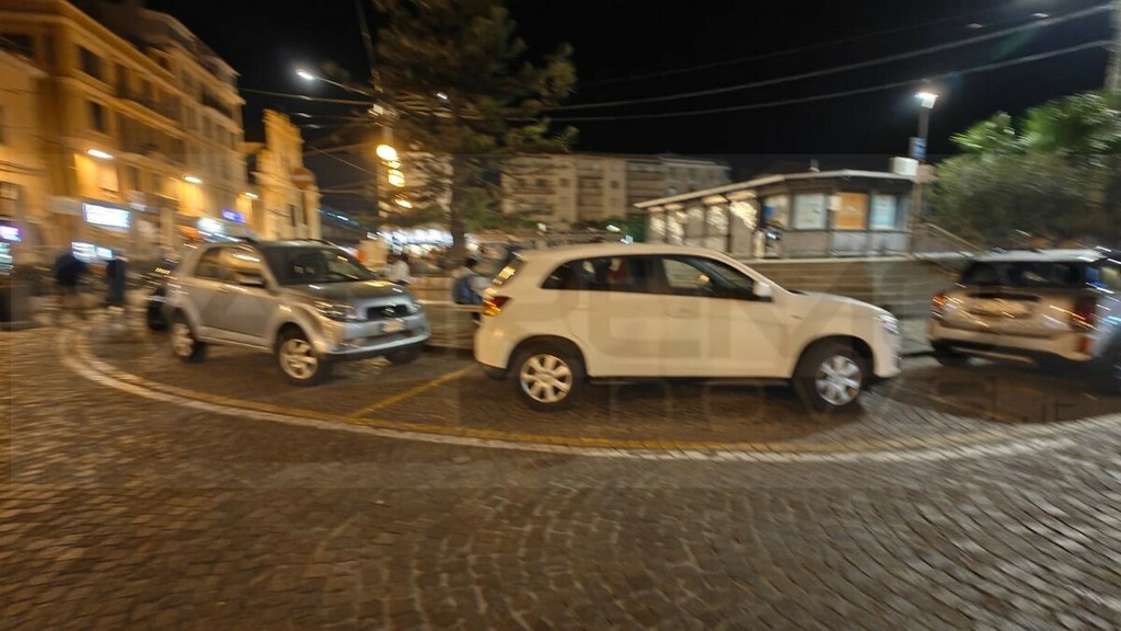 La piazza è chiusa al traffico, almeno dal lato di corso Garibaldi, ma il parcheggio ‘selvaggio’ è sempre più presente. Le foto che pubblichiamo raccontano di un sabato sera tra l’altro tranquillo, senza una massiccia presenza di turisti e, quindi, con tanti spazi per poter lasciare l’autovettura in centro. Eppure le zone che effettivamente sono legate al carico e scarico e che la sera non sono utilizzate da corrieri o camion per le consegne, erano totalmente occupate da auto, compresa quella che solitamente è occupata dall’aiuola spartitraffico. Il tutto mentre nel vicino Palafiori i parcheggi disponibili erano circa 70.