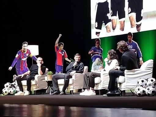 Serata di grande calcio e spettacolo al Teatro Ariston di Sanremo, dove l’energia del podcast Viva El Futbol è diventata show dal vivo con l’ultima tappa del “Viva El Tour”. Sul palco sono saliti Antonio Cassano, Lele Adani e Nicola Ventola, affiancati da due ospiti d’eccezione come Javier Zanetti e Daniele De Rossi. In platea presenti anche il sindaco Alessandro Mager e l’assessore Alessandro Sindoni, oltre a diversi rappresentanti dei settori giovanili delle squadre del territorio, che hanno riempito la casa del Festival. E un aspetto importante che ha fatto da fil rouge all'intera serata è stato proprio quello dei giovani, con le riflessioni prima su Zanetti legate agli anni di duro lavoro che lo hanno portato a ottenere numerosi successi e poi di De Rossi sul suo ruolo di allenatore, e come sia importante cercare e trovare il miglior modo di rapportarsi con loro, per aiutarli a crescere come giocatori e non solo.