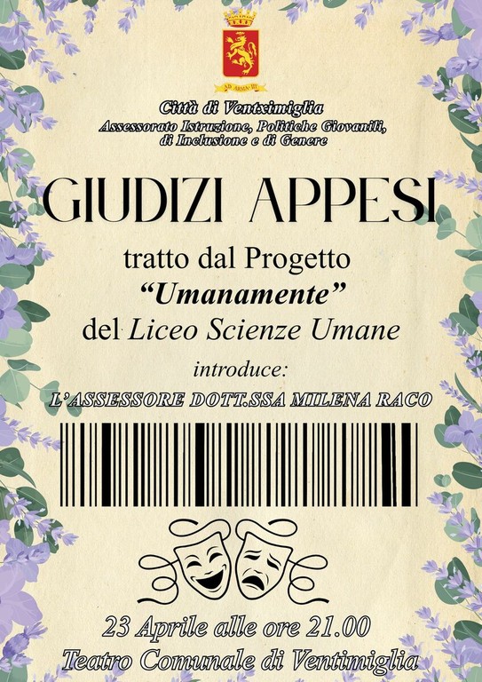Da questa sinergia, sostenuta dall’assessore Milena Raco, nasce "Umanamente": il nuovo progetto dell’indirizzo Scienze umane, che approda al Teatro comunale di Ventimiglia. Appuntamento giovedì 23 aprile alle ore 21.