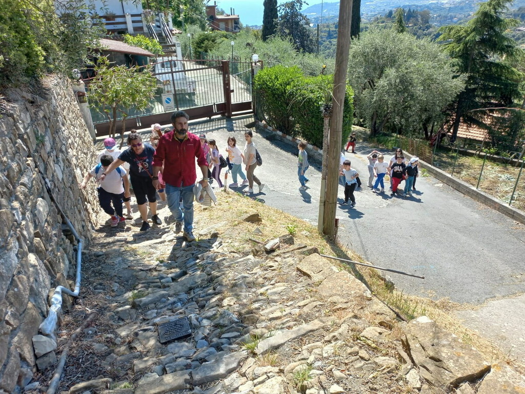 Nuovo appuntamento all’insegna della riscoperta delle radici per gli alunni delle classi primarie del plesso di San Pietro di Sanremo. Insieme ai volontari del collettivo "Amici di San Pietro", i bambini hanno vissuto un'escursione che dalla piazza del paese li ha condotti fino alla Croce della Parà, trasformando il sentiero in un vero libro di storia a cielo aperto. Una delle scoperte più affascinanti per i piccoli studenti è stata legata al nome stesso del loro borgo. Hanno infatti appreso che l’antico nome di San Pietro era Bestagno in onore probabilmente a una famiglia omonima. Il mutamento del nome in San Pietro avvenne successivamente, proprio in onore della chiesa campestre già presente sul territorio e dedicata al santo, la cui prima fondazione risale al XIII secolo. Un passaggio fondamentale per capire come la comunità si sia aggregata attorno al proprio luogo di culto nel corso dei secoli.