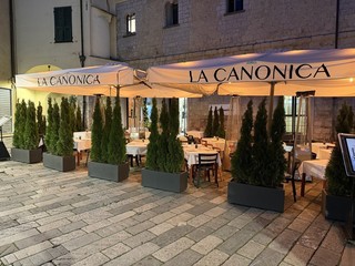 Nel cuore del centro storico, a pochi passi dal Teatro Ariston e dal Casinò, La Canonica offre uno spazio raccolto e autentico, ideale sia per una pausa pranzo di qualità che per un pranzo rilassato nel weekend, senza dimenticare la possibilità di cenare in uno degli angoli più suggestivi del centro storico.