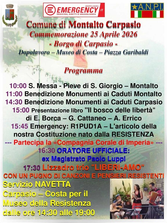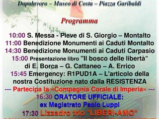 Il Comune di Montalto Carpasio, insieme alle associazioni del territorio, organizza per il 25 aprile una giornata dedicata alla memoria e alla celebrazione della Liberazione.