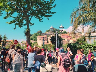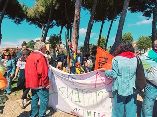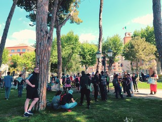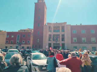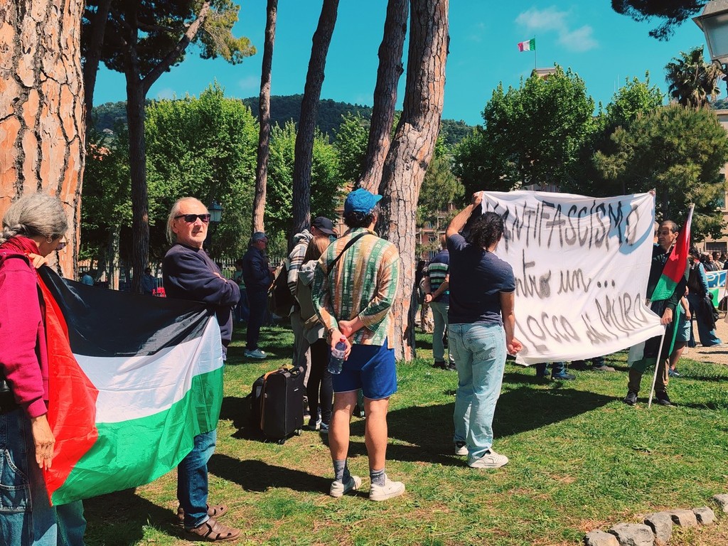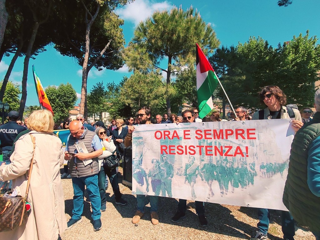 Donne e uomini hanno, infatti, protestato con striscioni, bandiere, cori, fischi, urla, canzoni, tamburi e dando le spalle al sindaco Flavio Di Muro durante la sua orazione ufficiale, per sottolineare la loro posizione "contro il fascismo, il razzismo, la guerra, lo sfruttamento e ogni oppressione".