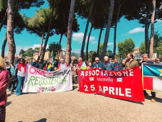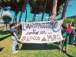 "L'antifascismo contro un...blocco di Muro. Nessun spazio ai fascisti. Ora e sempre resistenza. Fuori i fascisti dalle città. Contro guerra e repressione lotta senza mediazione. La resistenza continua". Sono alcune delle frasi pronunciate da un gruppo di manifestanti nel corso della cerimonia proposta in occasione dell'81esimo anniversario della Liberazione celebrata, questa mattina, a Ventimiglia.
