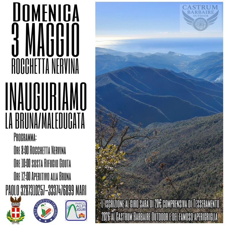 Il programma prevede alle 8 il ritrovo a Rocchetta Nervina, da dove i partecipanti partiranno. Alle 10 vi sarà una sosta al rifugio Gouta mentre alle 12 un aperitivo alla Bruna.