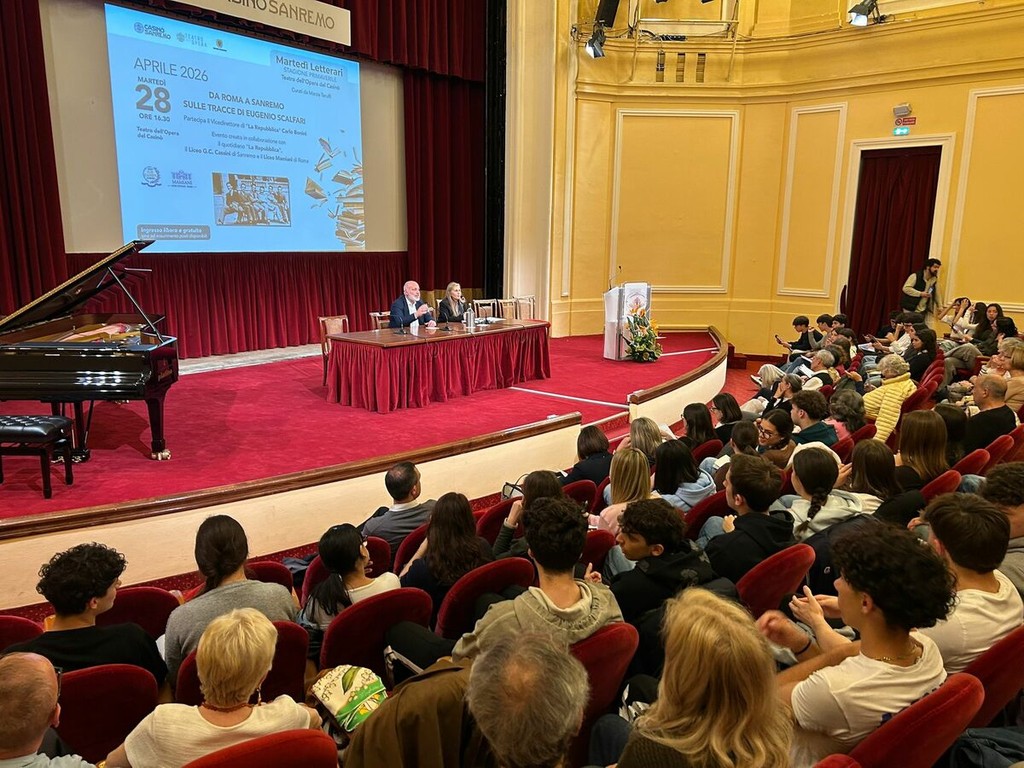 Un pomeriggio di cultura, memoria e formazione, con i giovani al centro. Si è tenuto ieri al Teatro del Casinò di Sanremo l’appuntamento dei Martedì Letterari dedicato a Eugenio Scalfari, figura chiave del giornalismo italiano, che ha visto la partecipazione del vicedirettore di “La Repubblica” Carlo Bonini e, soprattutto, degli studenti dei licei Cassini di Sanremo e Mamiani di Roma.