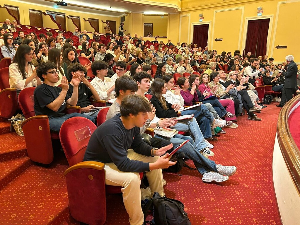 Protagonisti dell’evento sono stati proprio gli studenti, saliti sul palco per raccontare il lavoro svolto nei mesi precedenti. I ragazzi del Cassini hanno approfondito gli anni sanremesi di Scalfari, soffermandosi sul suo percorso di formazione e sul legame con Italo Calvino, compagno di classe e figura altrettanto centrale nella cultura italiana. Gli studenti del Mamiani hanno invece ricostruito il profilo professionale del giornalista, analizzando la nascita e l’evoluzione di “Repubblica”.