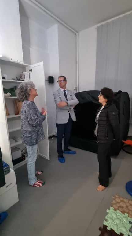 Il vicesindaco Fulvio Fellegara si è recato presso la scuola di Bussana per visitare la Snoezelen Room recentemente attivata dall'istituto. Si tratta di un ambiente multisensoriale progettato appositamente per offrire stimoli controllati tra luci soffuse, suoni armoniosi, texture tattili e aromi rilassanti, che aiutano a modulare le emozioni e favoriscono il benessere psicofisico di chi la utilizza.