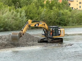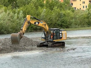 Dopo l'allestimento del cantiere, le verifiche tecniche e l'intervento di demolizione di ciò che era rimasto della 'vecchia' passerella, oggi le ruspe sono entrate in azione nell'alveo in seguito al ricevimento di tutte le autorizzazioni necessarie per poter svolgere le opere all'interno del fiume.