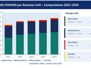 Il 2025 si caratterizza come un anno di stabilità e rafforzamento del modello organizzativo per Business Unit, con un miglioramento dell’efficienza gestionale nei servizi pubblici locali. Il settore dell’igiene urbana si conferma il pilastro economico, mentre contribuiscono positivamente anche il mercato dei fiori, le centraline idroelettriche e il Parco Costiero. Il volume d’affari raggiunge circa 40 milioni di euro, segnando una crescita del +22,6% rispetto al 2021. Guardando al futuro, il 2026 rappresenta un passaggio chiave: “Stiamo entrando in una fase di sviluppo industriale importante – prosegue Tommasini – sostenuta da un significativo piano di investimenti orientato all’innovazione e alla sostenibilità”. Il budget prevede un valore della produzione vicino ai 40 milioni di euro e un risultato positivo di circa 256 mila euro, in un’ottica prudenziale legata all’avvio dei nuovi progetti.