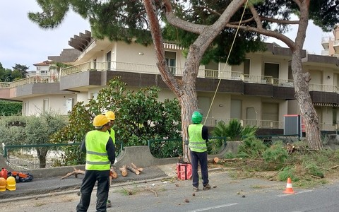 Pini abbattuti in via Padre Semeria a Sanremo, la protesta degli animalisti: “A rischio i nidi degli uccelli”
