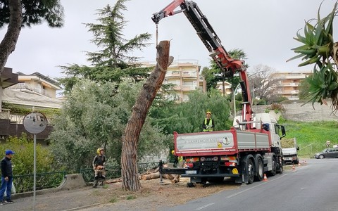 Sanremo, partono i lavori di taglio dei pini in via Padre Semeria (Foto)