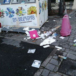 Sanremo: immondizia gettata ovunque in piazza San Bernardo, una lettrice "Bollette intestate ma nessuno controlla" (Foto)