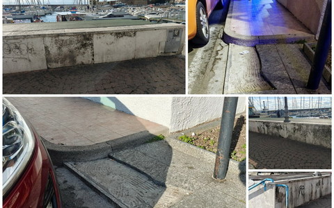 Sanremo: una piastrella rotta da tempo e un muretto in pessime condizioni, c'è bisogno di manutenzione al porto vecchio (Foto)