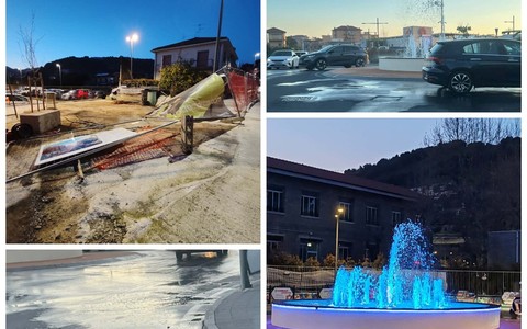 Vallecrosia al Mare, forte vento: l'acqua della fontana finisce sulla strada (Foto)