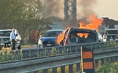 Prima il tamponamento, poi le fiamme: auto brucia sulla Torino-Savona (Foto e Video)