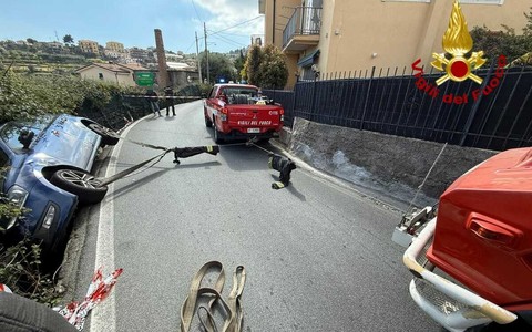 Sanremo: auto fuori strada in Strada Solaro Rapalin: intervento dei Vigili del Fuoco, nessun ferito