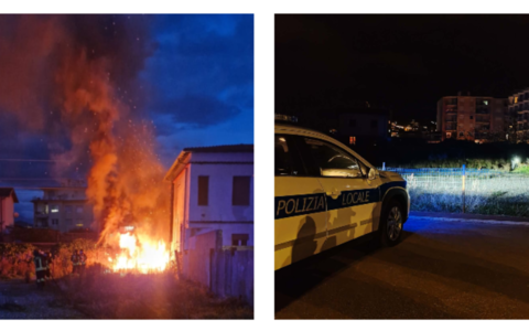 Vallecrosia, fumo e fiamme sul lungomare: polizia locale e vigili del fuoco in azione (Foto e video)