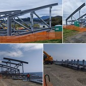 In attesa della riapertura della pista ciclopedonale tra Taggia e Riva Ligure, nella zona del cantiere sono arrivate le prime componenti del nuovo ponte che sostituirà il vecchio attraversamento demolito nei mesi scorsi