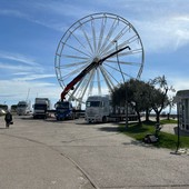 Sanremo, iniziato lo smontaggio della ruota panoramica: l’attrazione era rimasta attiva anche dopo il Festival (Foto)