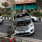 Ospedaletti: incidente in Corso Regina Margherita, auto contro un palo della Riviera Trasporti (Foto)