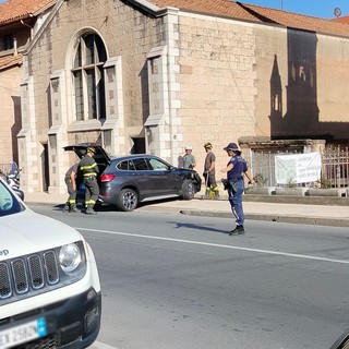 Sanremo: auto si schianta contro la chiesa Anglicana, traffico in tilt ed intervento dei Vigili del Fuoco (Foto)
