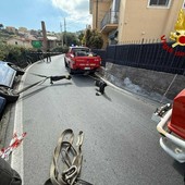 Sanremo: auto fuori strada in Strada Solaro Rapalin: intervento dei Vigili del Fuoco, nessun ferito
